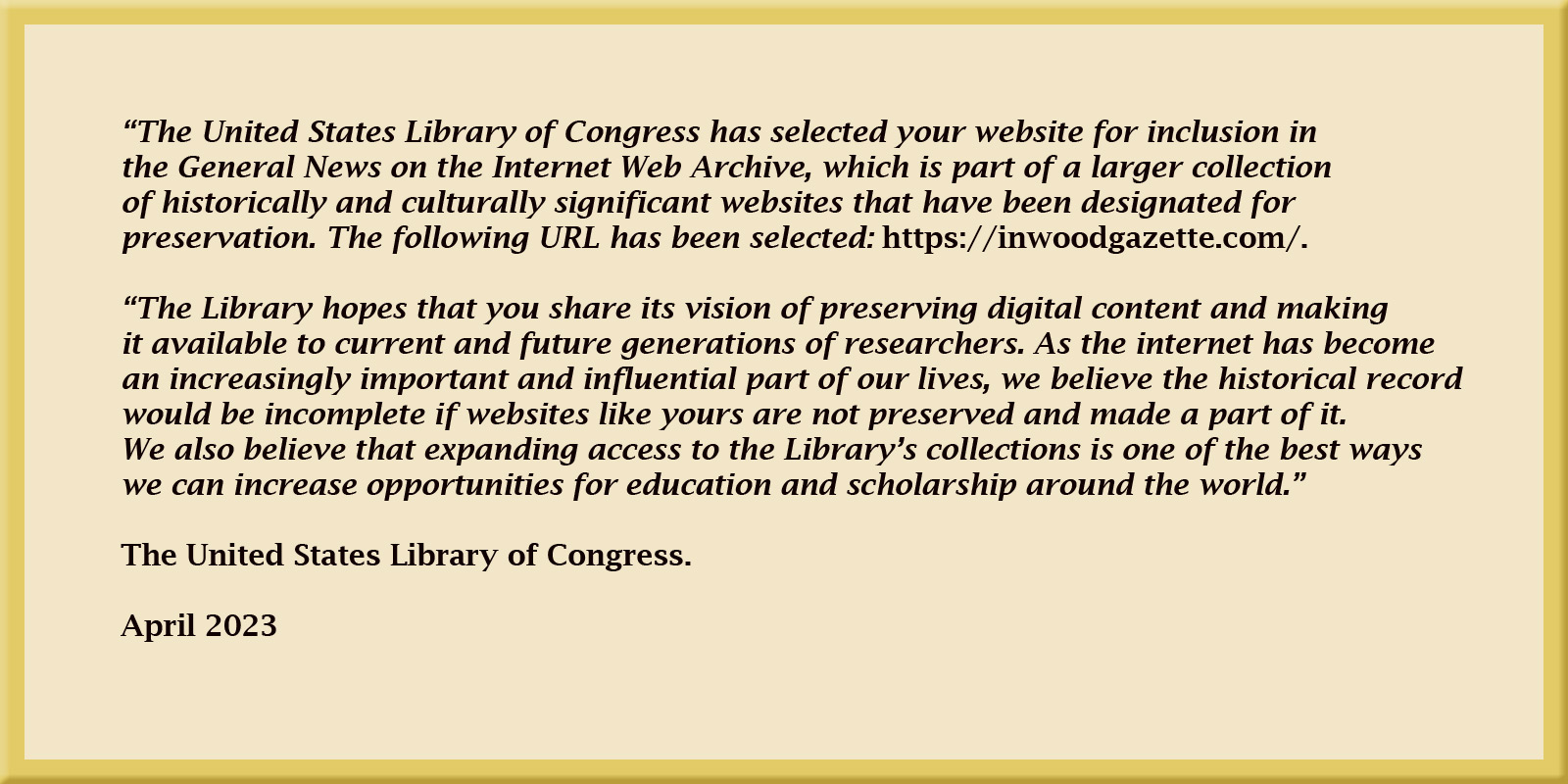 LoC2 March 21, 2026 Return to: A Decade of Inwood GazetteFull resolution (1600 × 800) Image navigation Previous Image